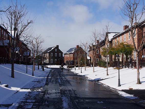 写真は病院帰りに寄って撮った、隣の団地の一角にある、北欧風の住宅群だが雪が少ないのでイマイチ。